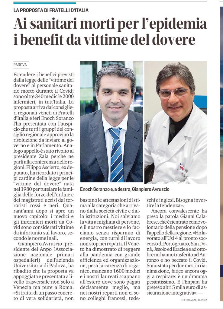 Per dare dignità ai medici, infermieri e personale sanitario che ha contratto il covid sul lavoro e ha perso la vita o subito lesioni invalidanti, l’ associazione Andromeda Regione Veneto Onlus insieme a MAZLegal chiede di estendere a queste categorie i benefici della legge sulle vittime del dovere.